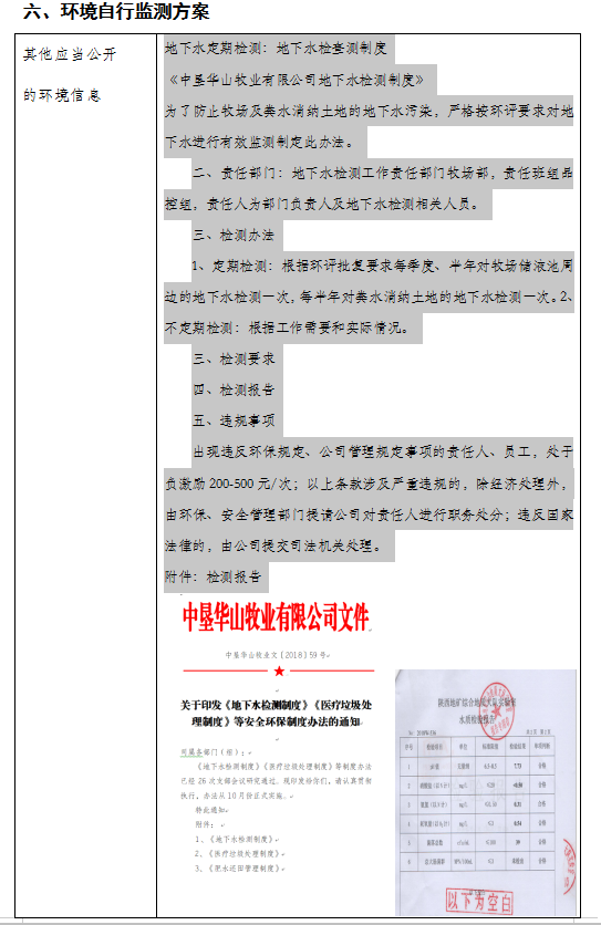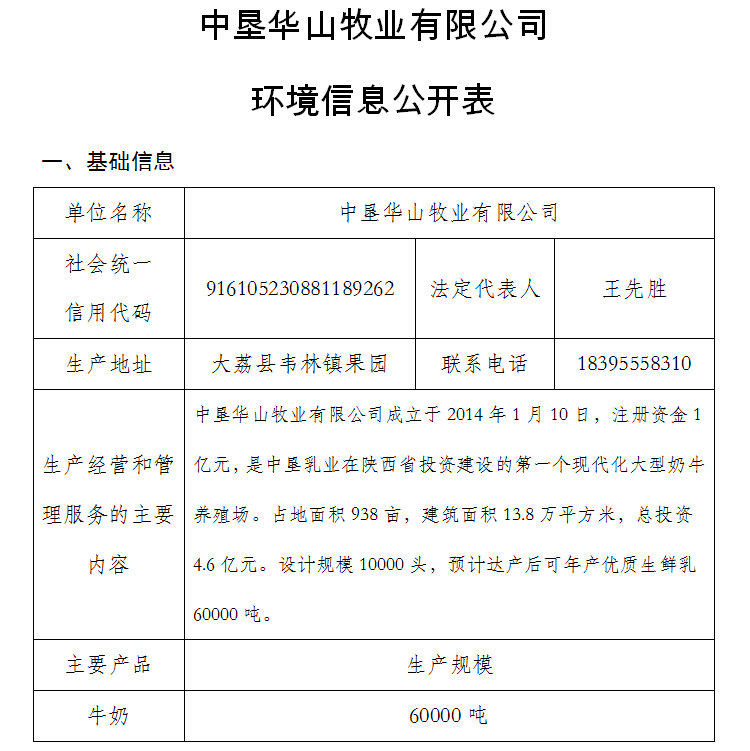 中墾華山牧業(yè)有限公司環(huán)境信息公開表