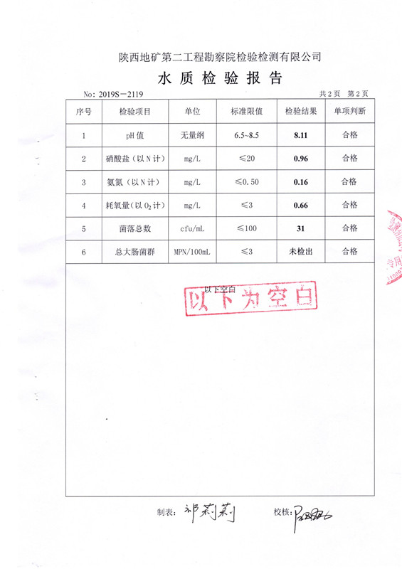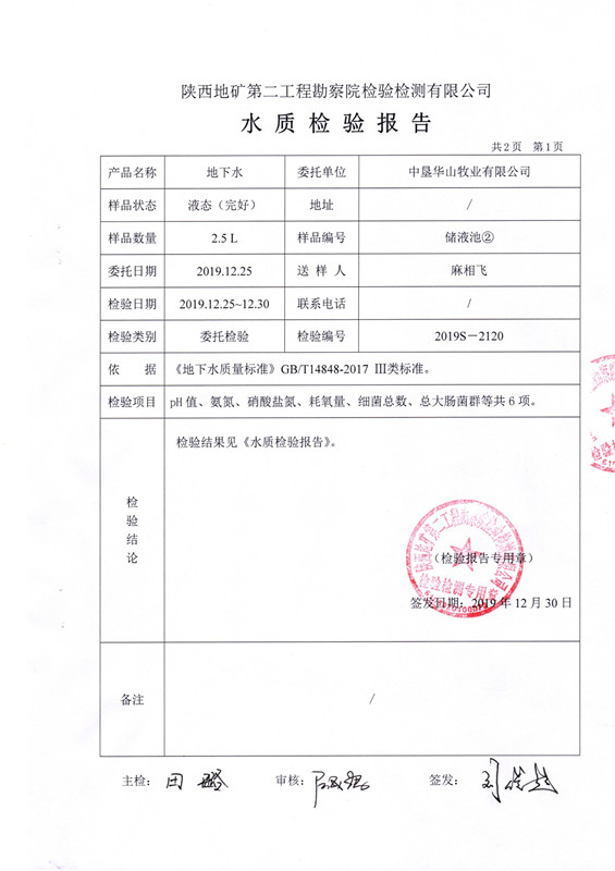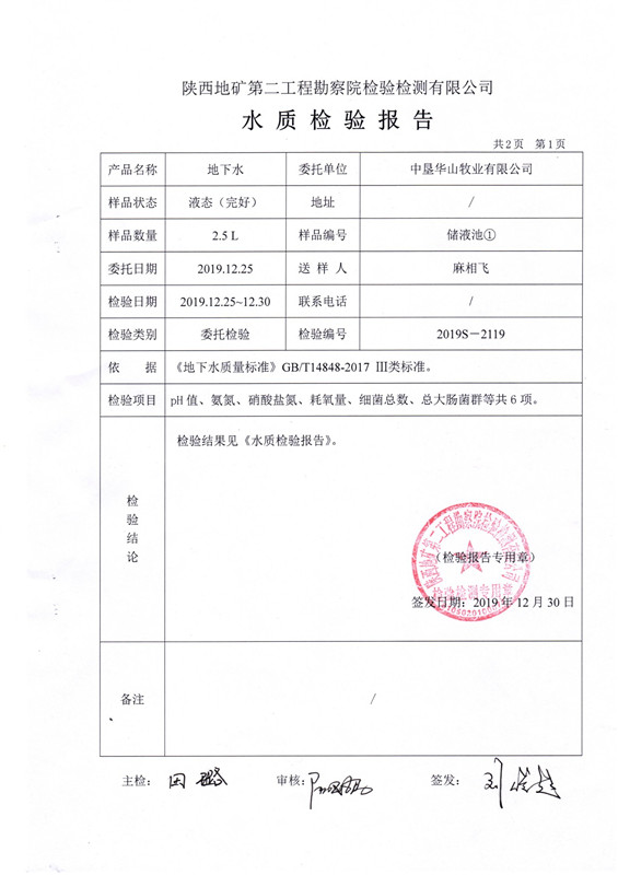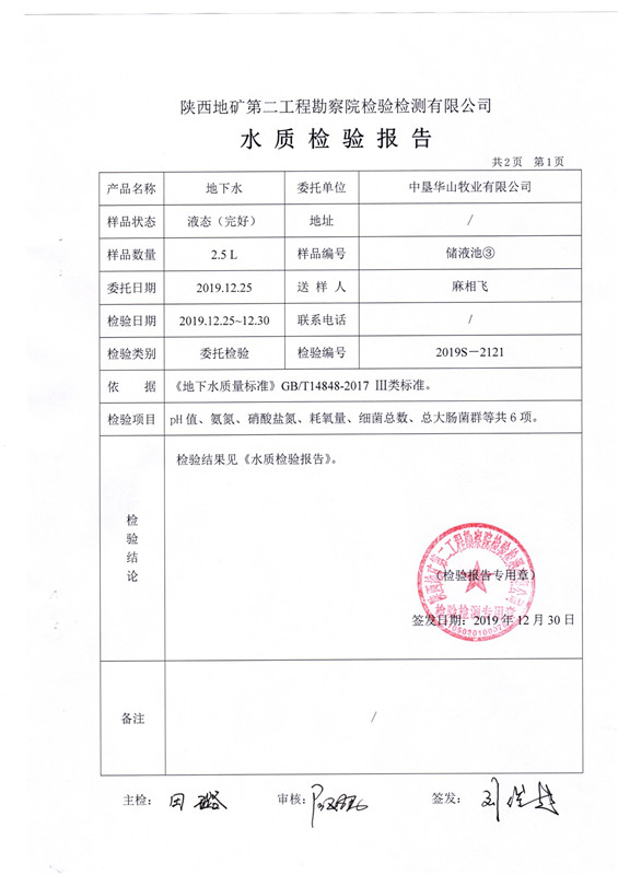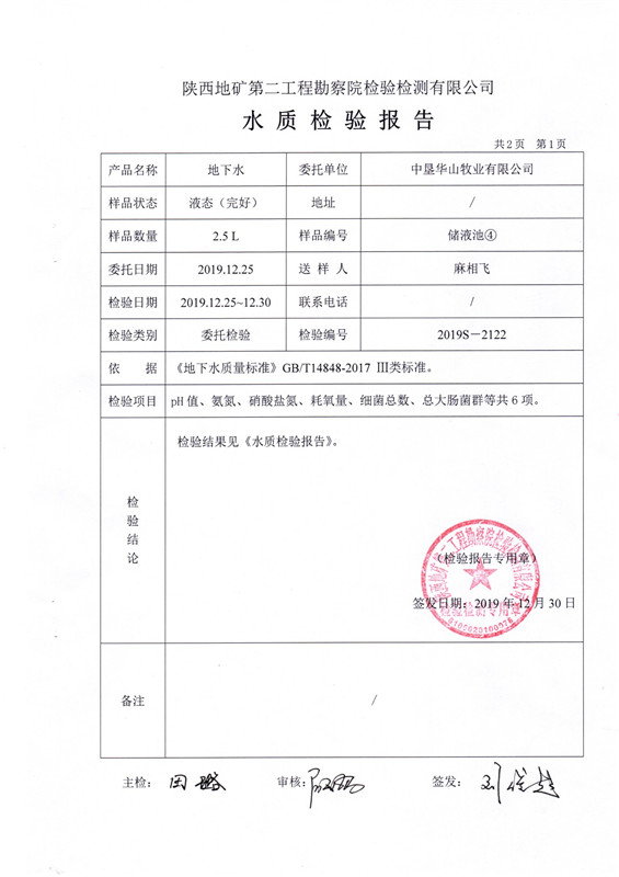 中墾華山牧業(yè)有限公司環(huán)境信息公開(地下水檢測(cè)報(bào)告)儲(chǔ)液池① 第2119號(hào) 儲(chǔ)液池② 第2120號(hào) 儲(chǔ)液池③ 第2121號(hào) 儲(chǔ)液池④ 第2122號(hào) |