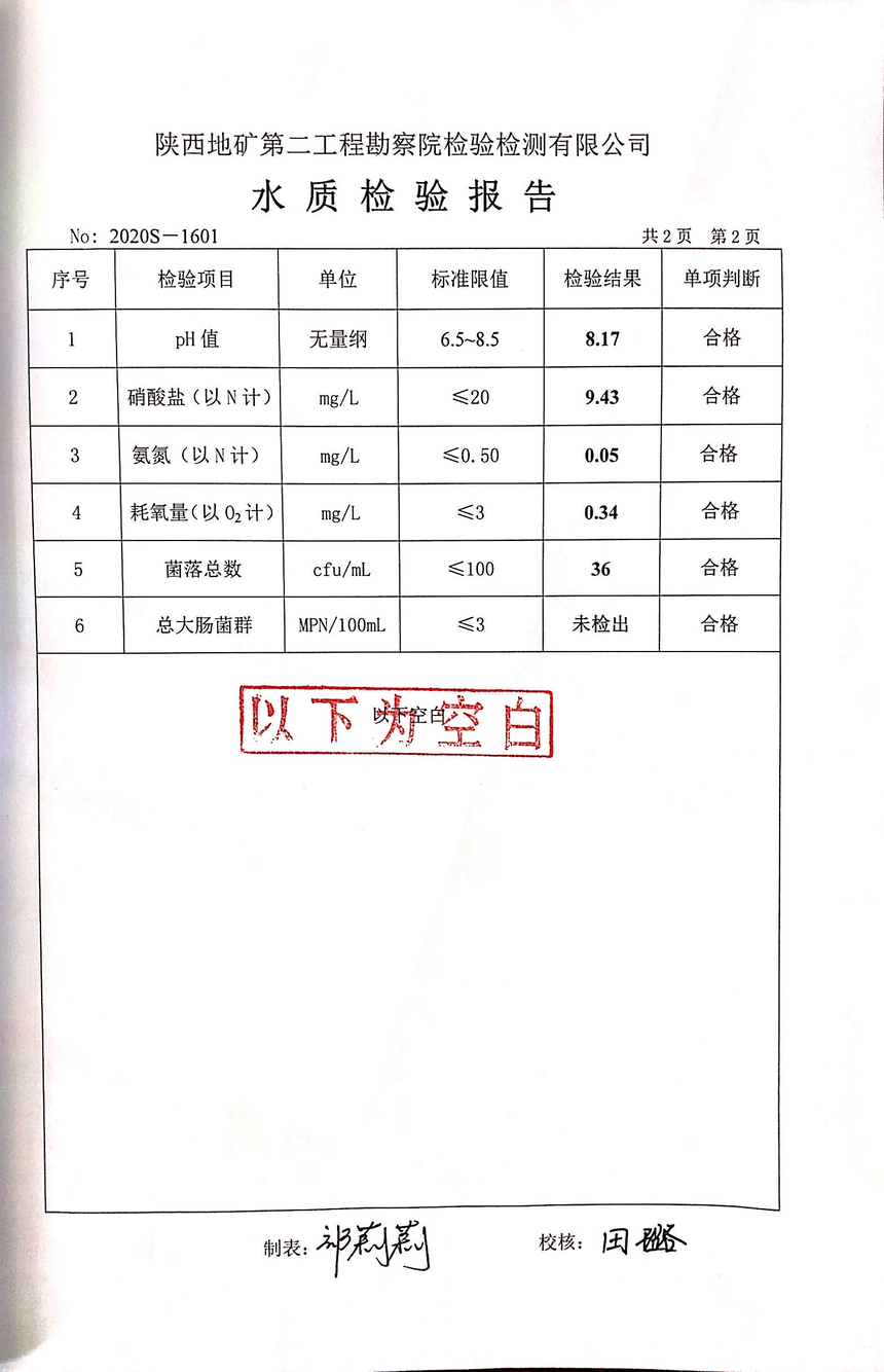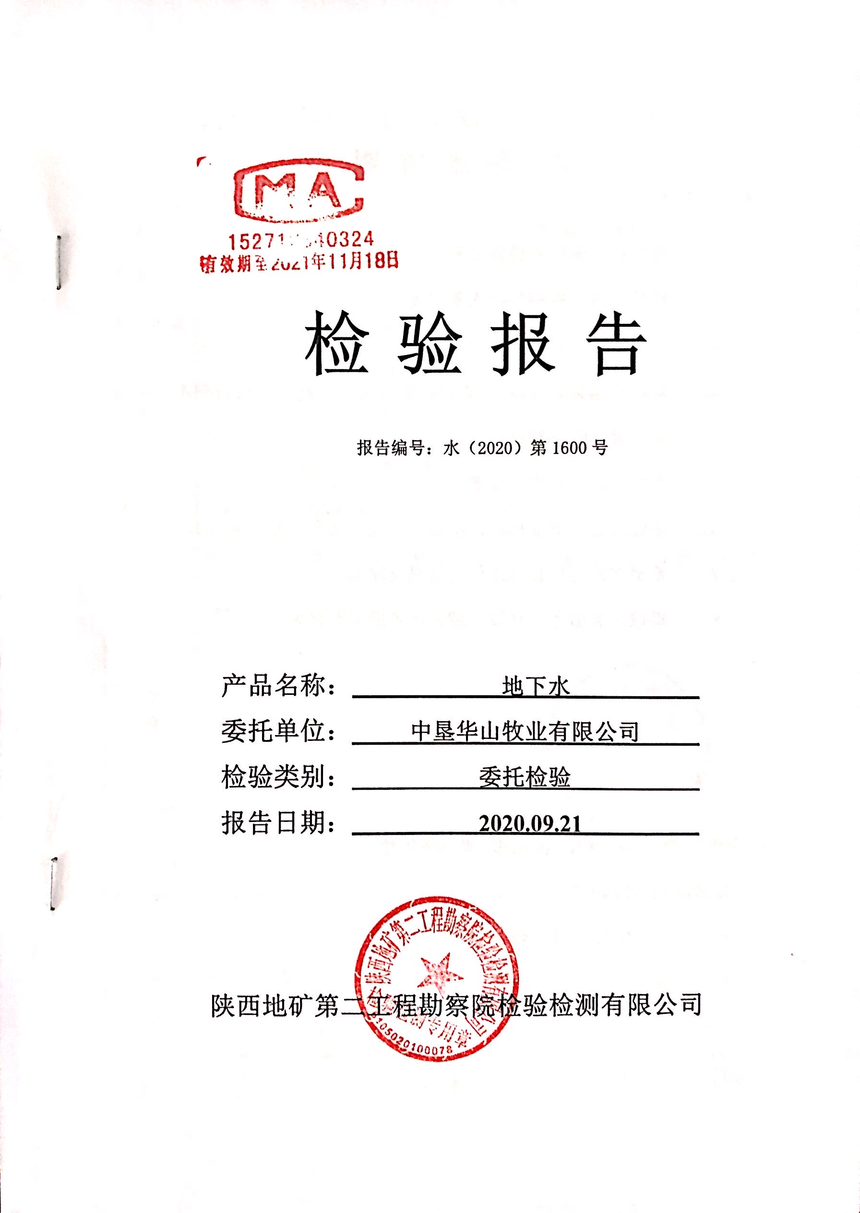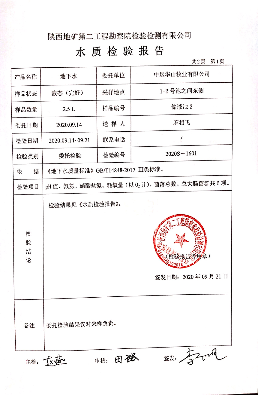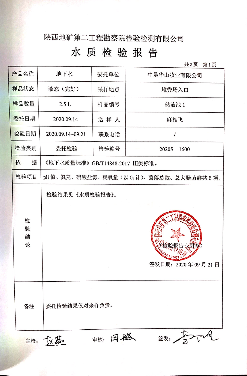 中墾華山牧業(yè)有限公司環(huán)境信息公開(地下水檢驗(yàn)報(bào)告2020.9)时间:2020-11-04 【原创】 水(2020)第1600號 蓄液池1