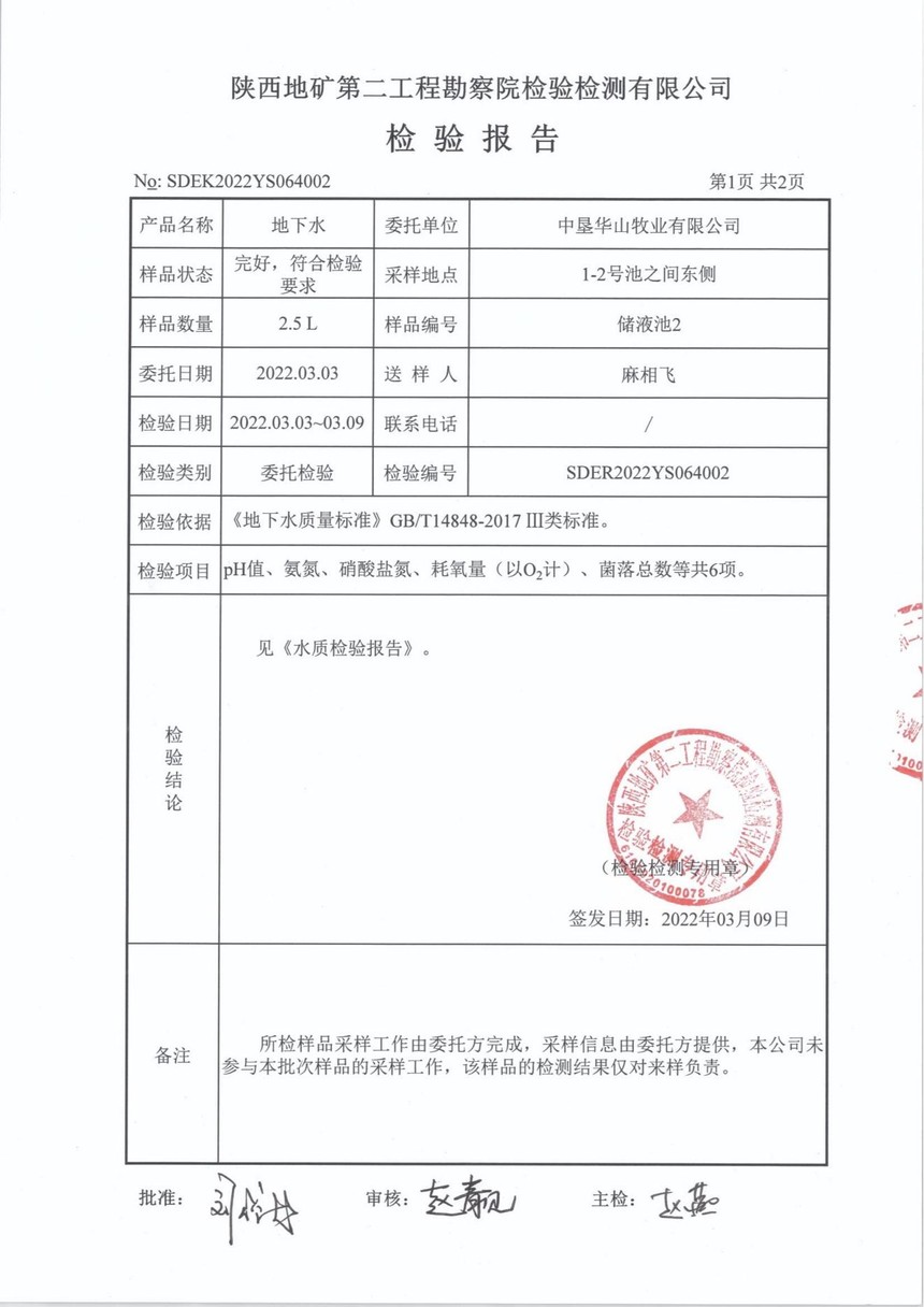 中墾華山牧業有限公司環境信息公開(地下水檢驗報告2022.3)时间:2022-04-16 【原创】 地下水 儲液池1 SDEK2021YS064001 地下水 儲液池2 SDEK2021YS064002 地下水 儲液池3 SDEK2021YS064003 地下水 儲液池4 SDEK2021YS064004 |