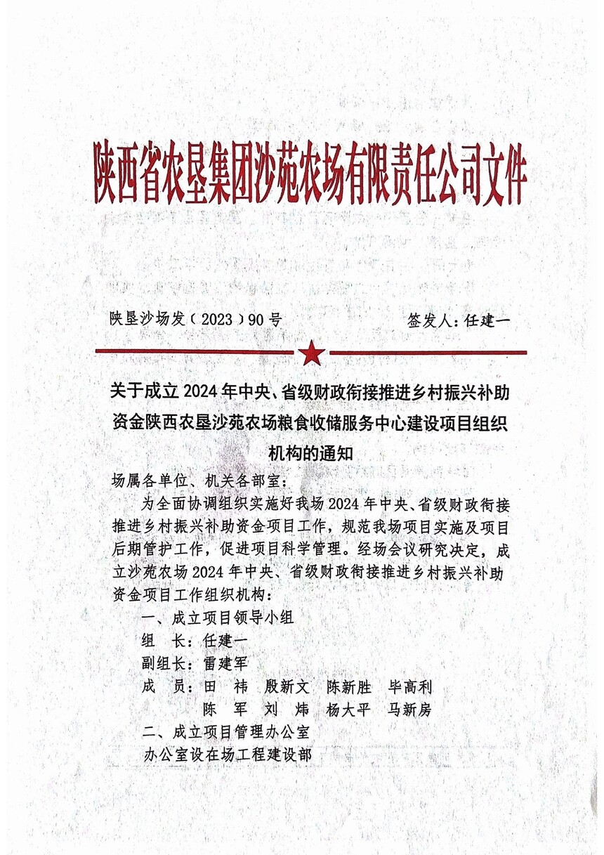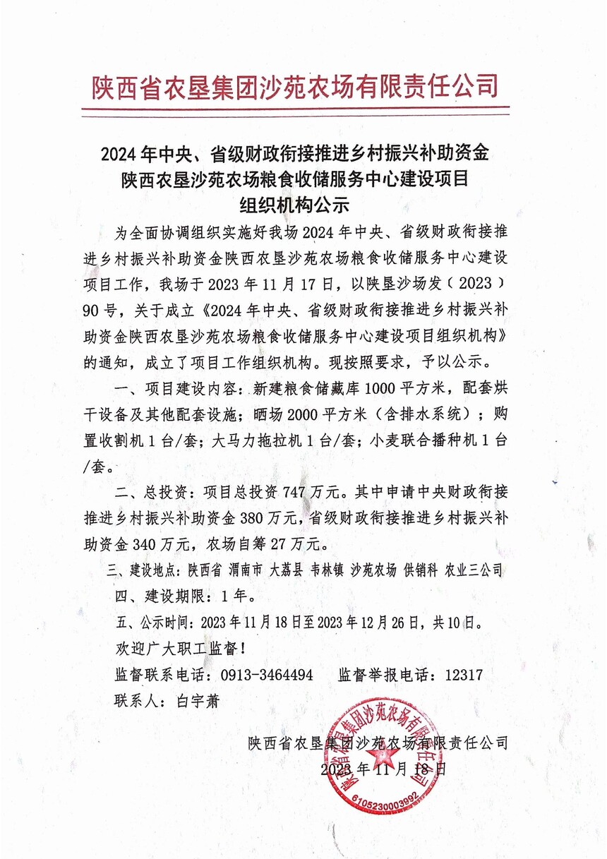 2024年中央、省級財政銜接推進鄉村振興補助資金陜西農墾沙苑農場糧食收儲服務中心建設項目組織機構公示