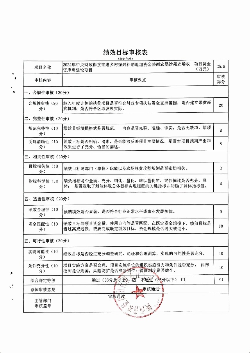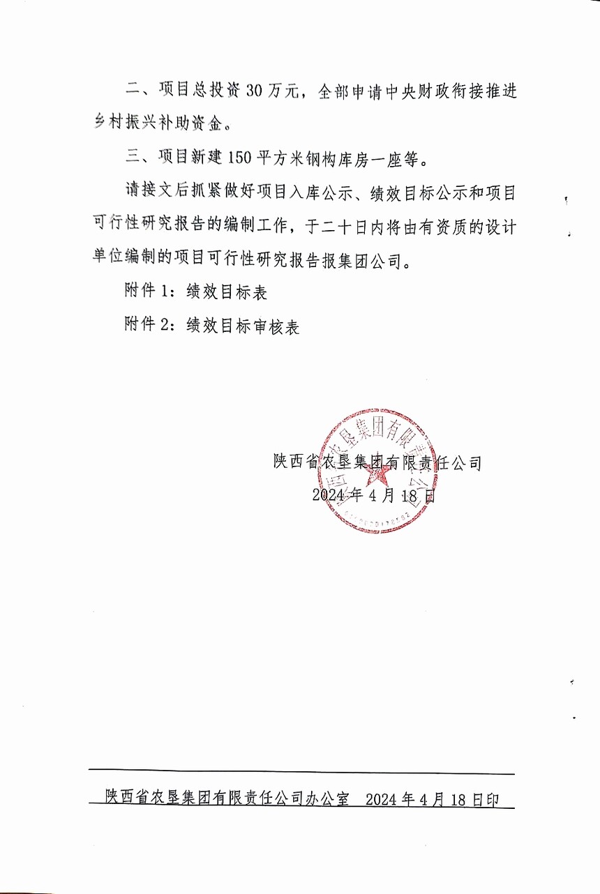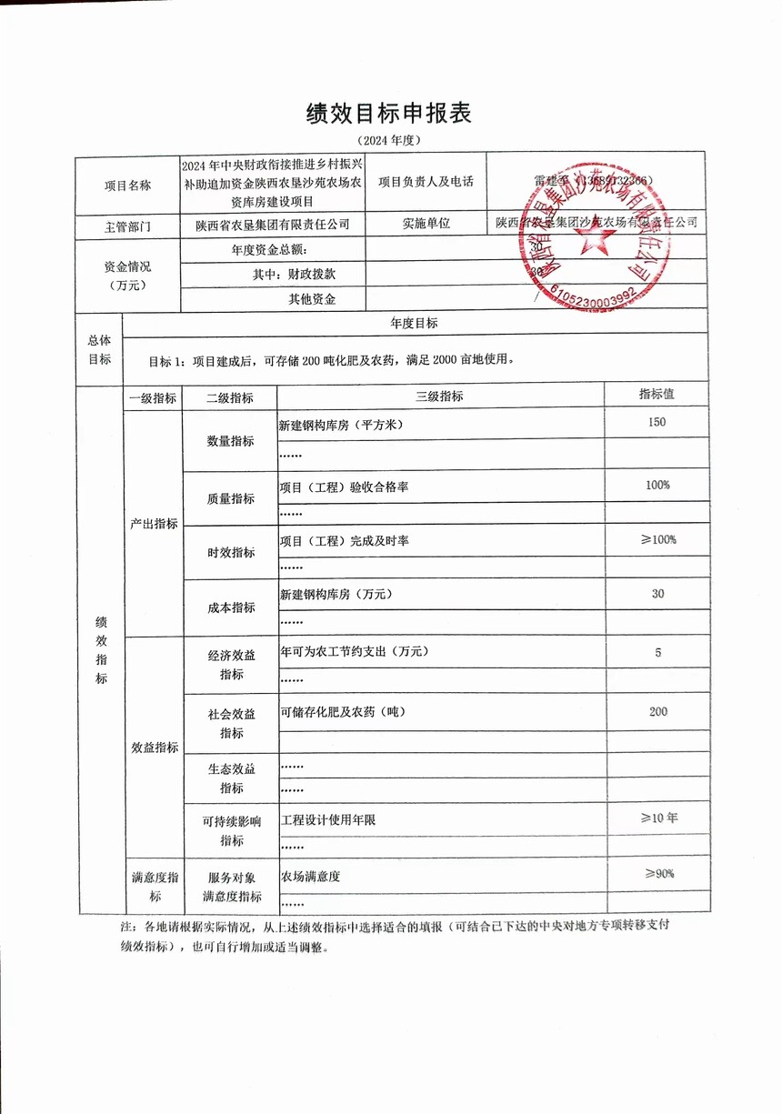關于2024年中央財政銜接推進鄉村振興補助追加資金陜西農墾沙苑農場農資庫房建設項目入庫及績效評價的公示